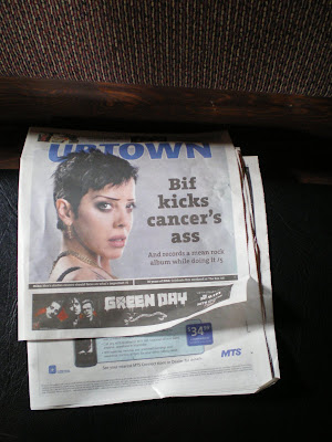 The cover entrains with what we are talking about here as it reads "Bif kicks cancer's ass".
