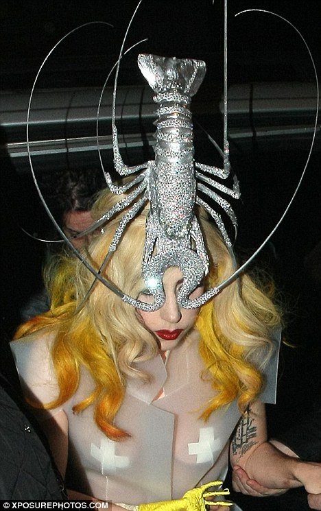 Cancer is the Crab or the Lobster. We see Lady GaGa capped by the Lobster Hat. This is absolutely perfect as GaGa has the two G's which can resemble the sign of Cancer.